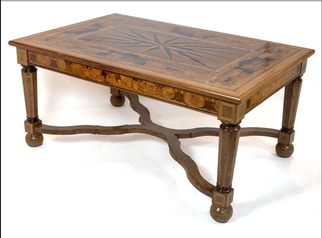Particolare e prezioso Tavolo rettangolare intarsiato Rolo