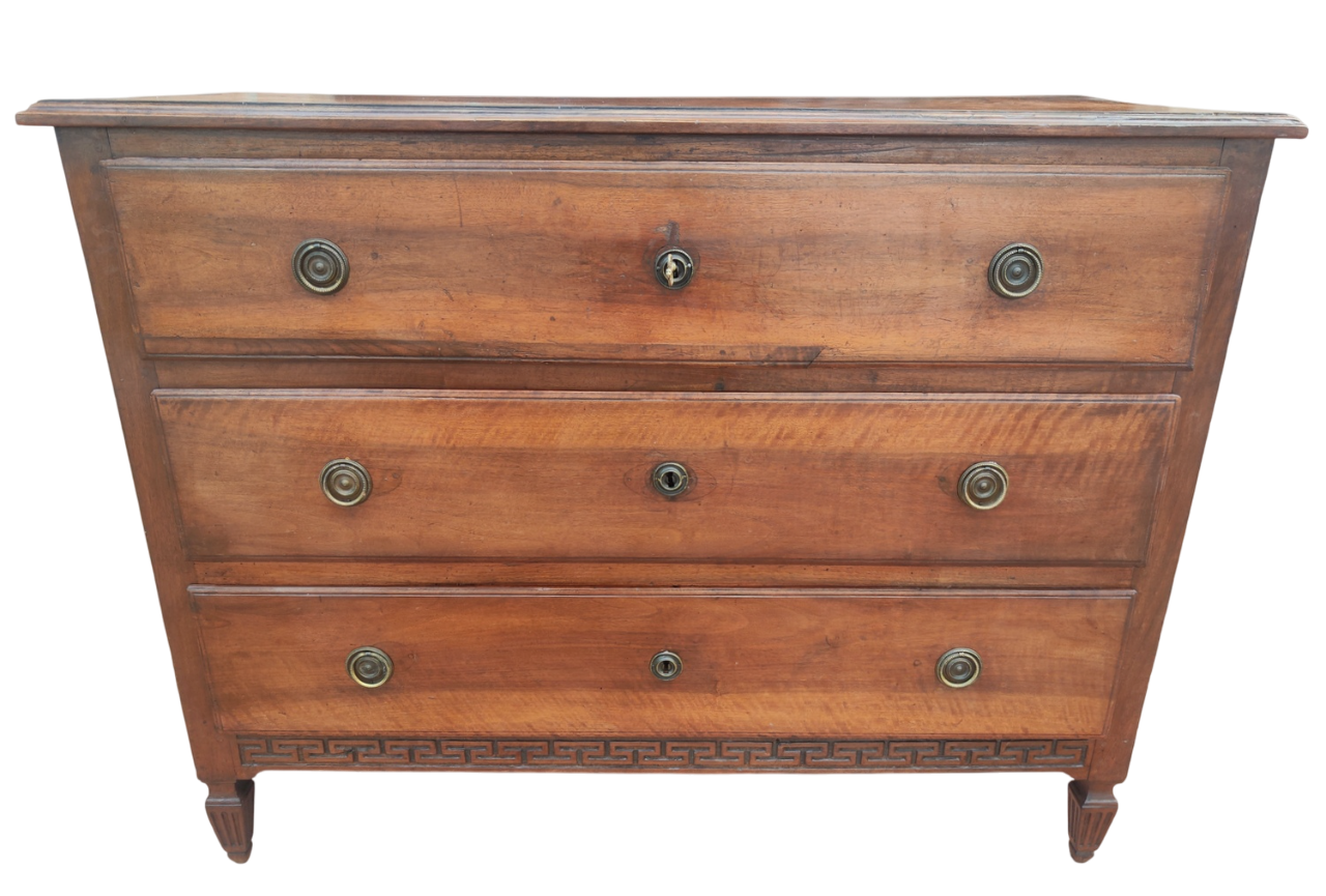Integro ed importante Cassettone Transizione Luigi XVI-Direttorio in noce